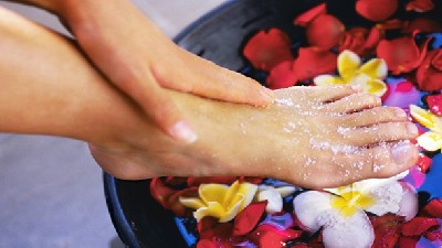 Kosmetische Fußpflege , auch Nagelgestaltung und Hühneraugenentfernung.